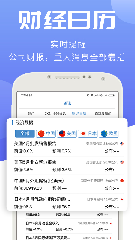 【自选股】添加自己关注的股票,设定价格位置,不用实时盯盘,止盈止损点智能提示,关注的股票打开即看。