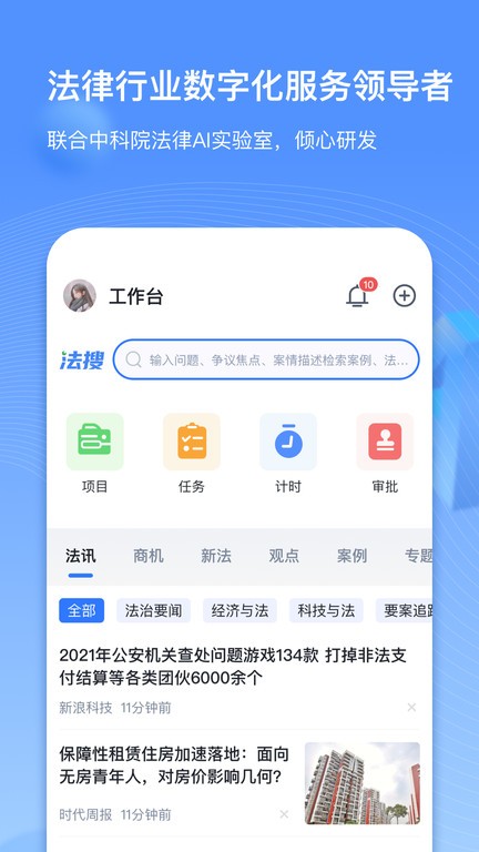 得理律助app最新版是专为法律从业人员打造的便捷服务手机软件,是律师办公的好帮手,支持在手机上查看最新的法律资讯,能够在线查看项目和进度,能够查看真实的案例解析,可以查法规和观点。