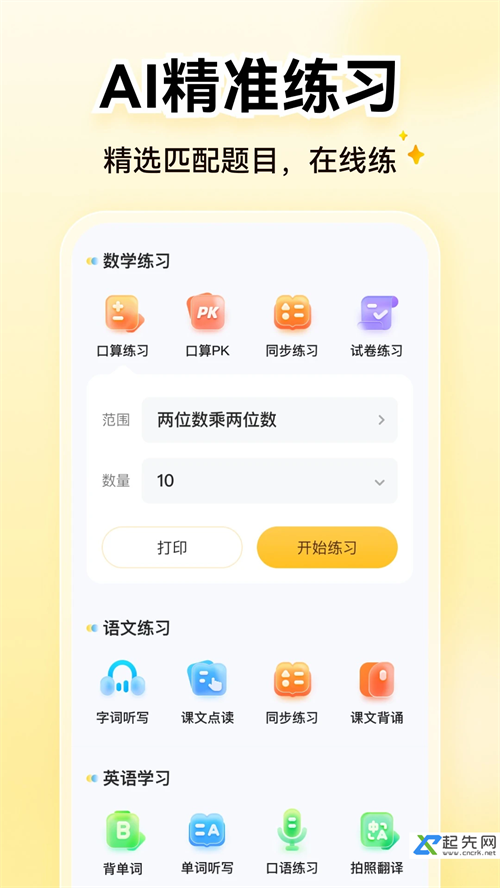 6、海量题库,自由打印:题库紧贴教学大纲,题型知识点覆盖全面,轻松获取海量题库,一键打印,随时练习;