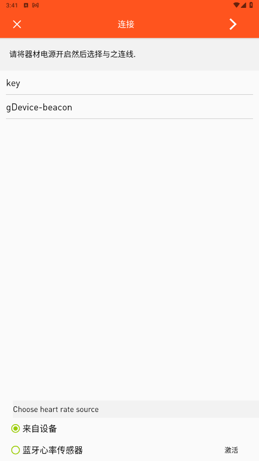 此应用程序必须与兼容的健身自行车、椭圆机或带有内置蓝牙低能耗BLE接收器的跑步机配合使用。