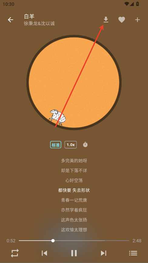 2.在播放界面点击右上角下载按钮。