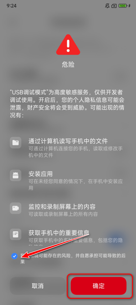 4.手机如果弹出提示,我们点击确定即可