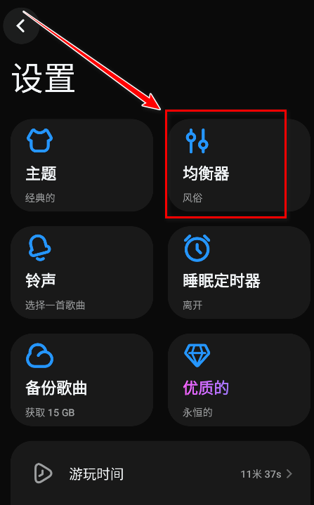 7.开启均衡器按钮,然后自定义选择并点击音乐风格即可。