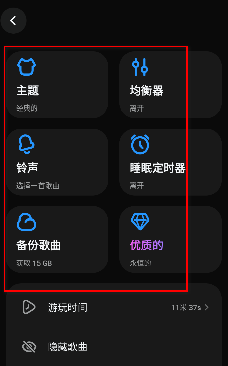 5.支持自定义设置主题、均衡器、铃声、睡眠定时器、备份歌曲等功能,大家想用哪个就点击哪个。