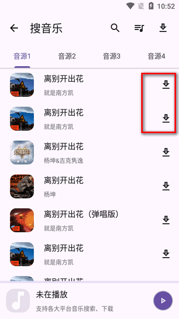 5、搜索出来的结果点下载然后选择音质。