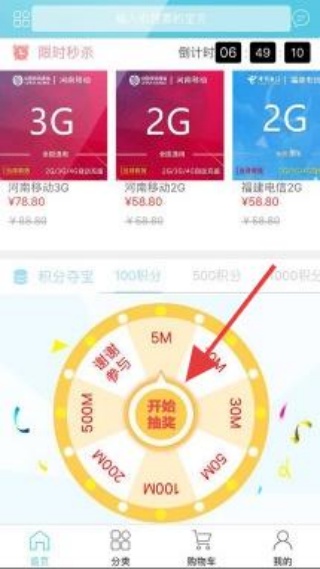 2.进入应用活动页面,看到积分夺宝抽奖轮盘,点击开始抽奖按钮,参与抽奖活动。