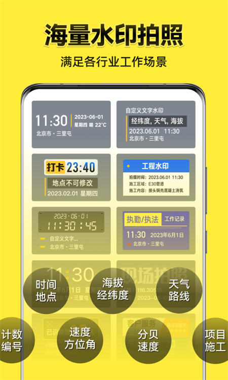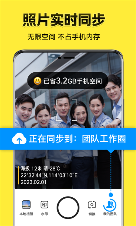 工作拍照、团队考勤打卡、工程管理、外勤拍照、旅行拍照、宝宝成长拍照、记录美好生活都在用!