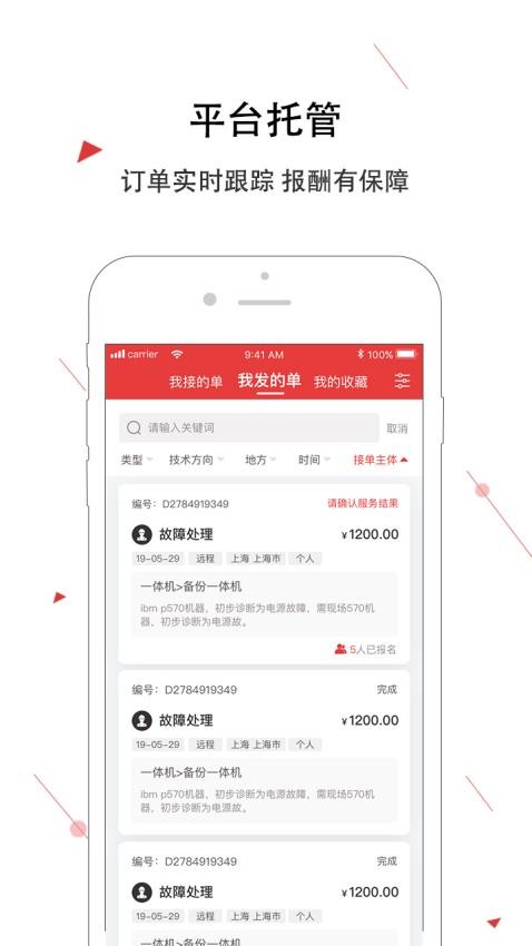 4、承接的订单可实时在线关注,了解服务情况,保障准时完成;
