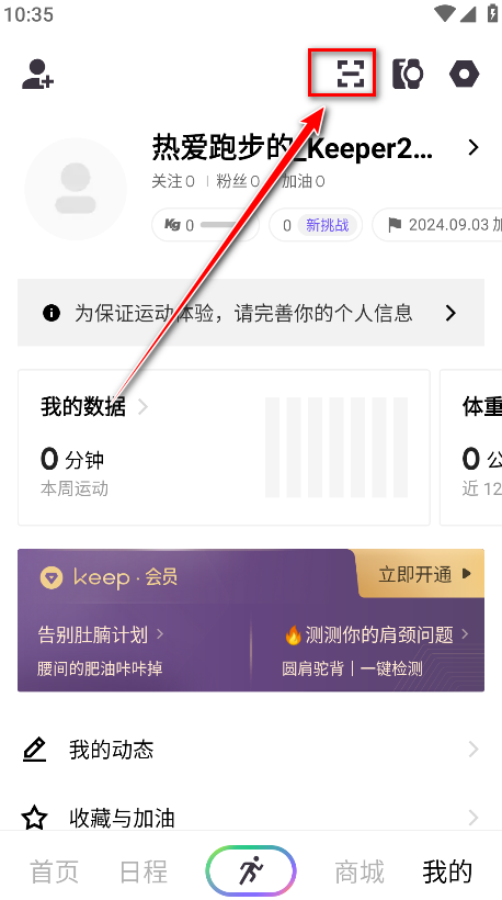 1.打开Keep,点击右下角我的。