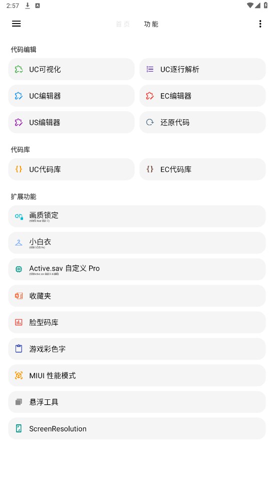 UC可视化、UC逐行解析、UC编辑器为画质修改功能。