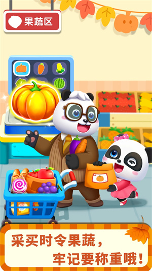 【宝宝超市】设置7大购物区域,30个商品柜台,真实还原线下超市。