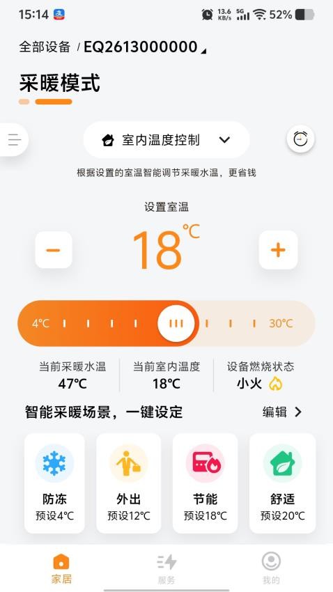 轻松管理智能采暖设备,并能自由选用对应的模式和控制温度;