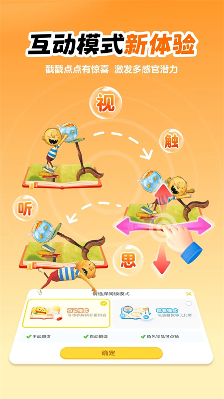 孩子可以通过手指触点,与书中人物、动物、景物进行互动,让孩子沉浸式体验绘本乐趣,充分探索每一个故事。