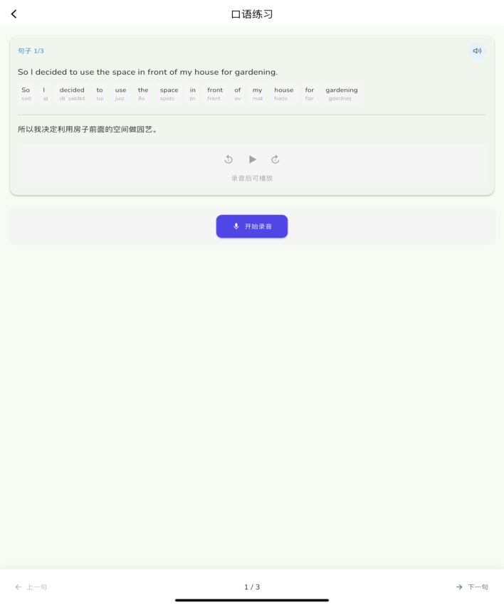 录制自己的英语口语,软件就会自动的进行分析,让学生知道如何进行口语优化;