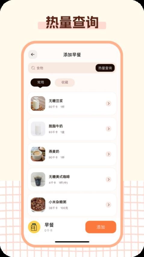 2、用户可以对相关的食物热量进行查询,随时查询。