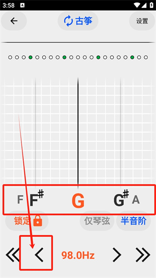 2、在调音页面点击右下角的<选择自己的调子,比如A、G、F等。