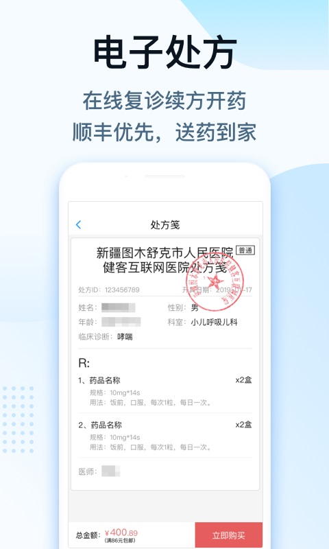 【在线开药】网上找医生复诊开药,配送到家。