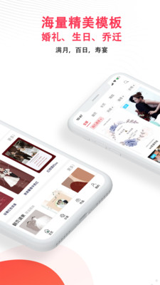 婚礼乎请柬是一款多功能的服务类软件,大量的使用下载电子版请柬,多场景喜事都能适应,风格多样种类繁多任用户选择使用,制作使用简单,只需找好您需要的模板,输入您要编辑的文字即可快速制作,一键转发分享,快捷实用。