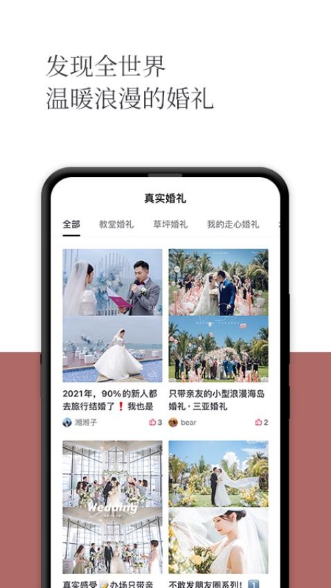 在这里就可以获得平台提供的婚礼信息,让你可以找到自己感兴趣的婚礼类型;