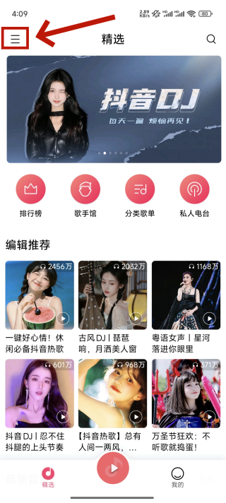 1、打开小米音乐,点击左上角的菜单。