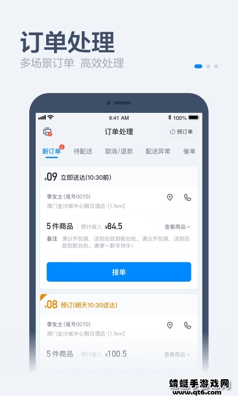 便捷处理各种接单、备货、配送、订单查询等订单事务。
