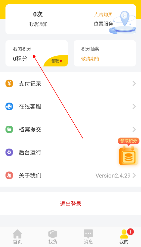 2.在“我的”页面上,向下滚动,找到“我的积分”选项。