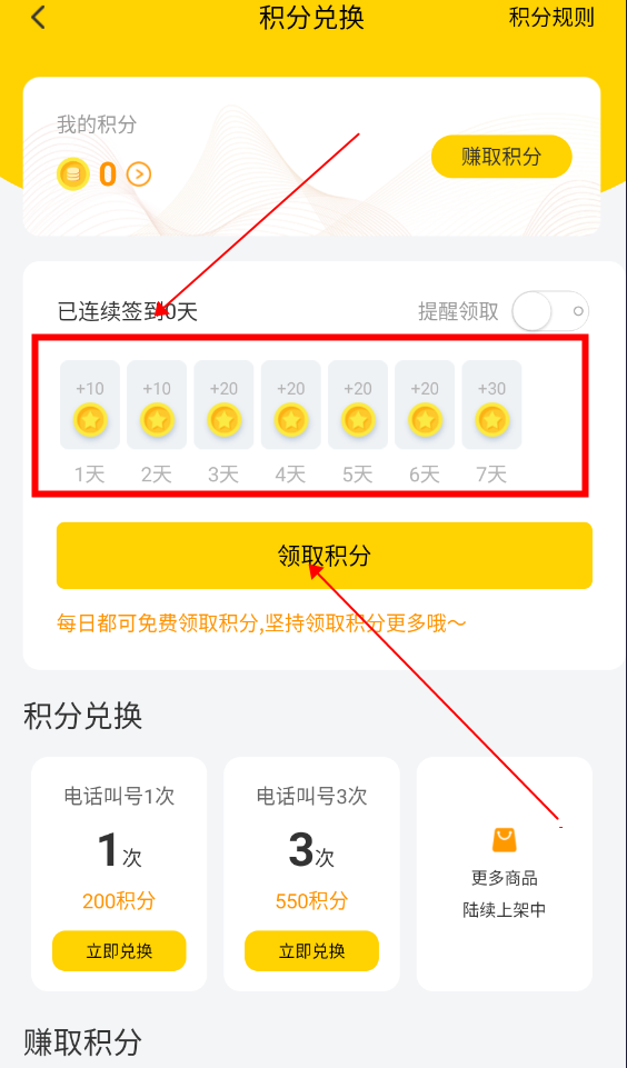 3.点击“我的积分”选项,进入我的积分签到页面。