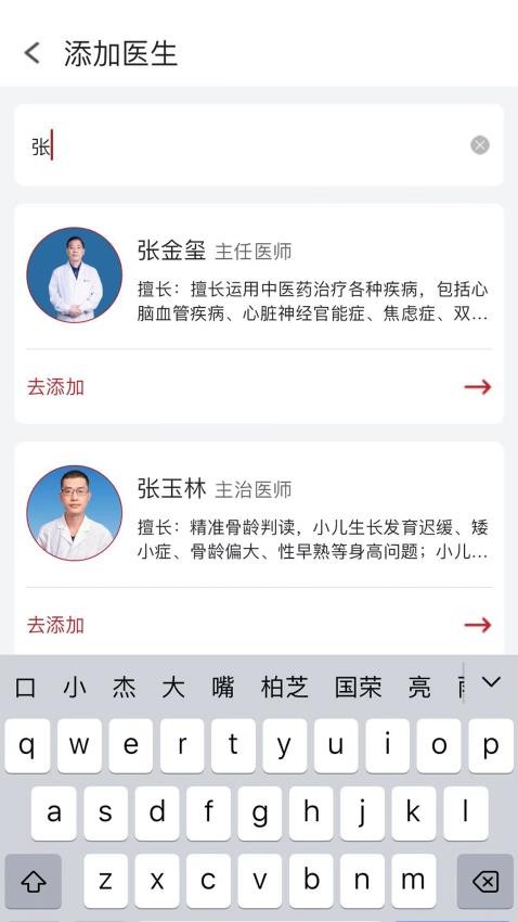 1、打开应用就可以在线筛选添加自己需要的医生。