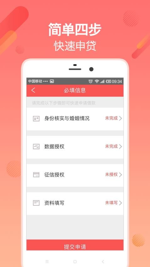 全程在手机端借款,仅需四步就能快速完成借贷申请;