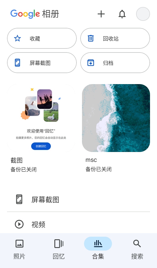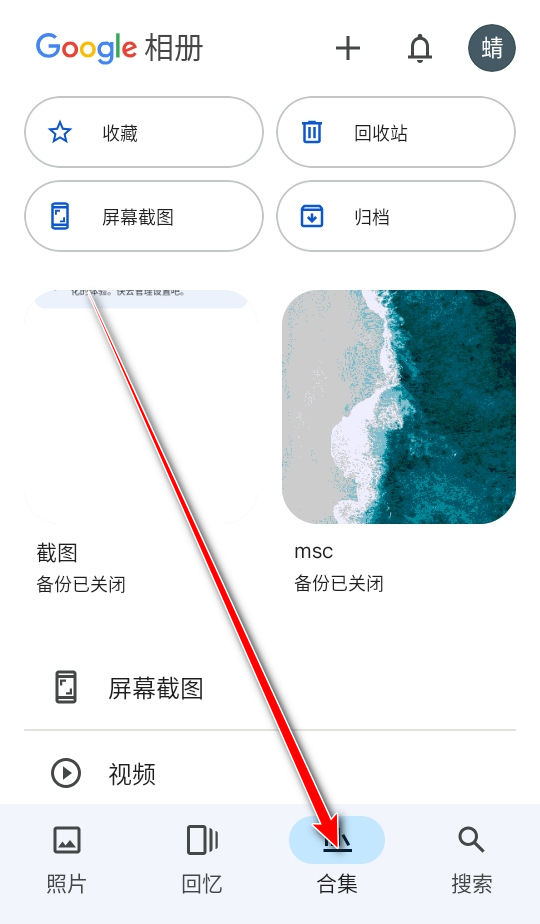 1.打开 Google 相册应用,点按底部的合集