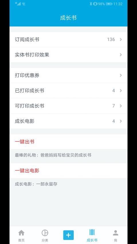 4、在成长书页面,就能在线订阅成长书,并能一键领取优惠券打印实体书;