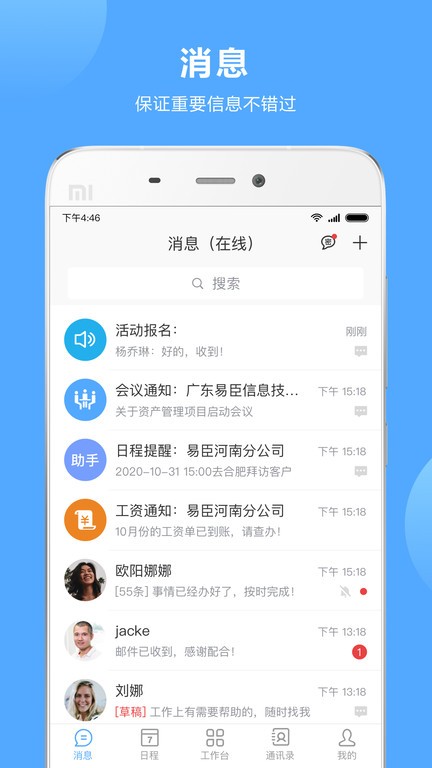 易臣云办公手机客户端(易办公)作为便捷的移动办公app,能够帮助企业用户高效的进行协同办公,可以及时处理个人事物,能够查看每天的待办任务,可以根据日历来查看日程安排,可以在企业内部收发消息。