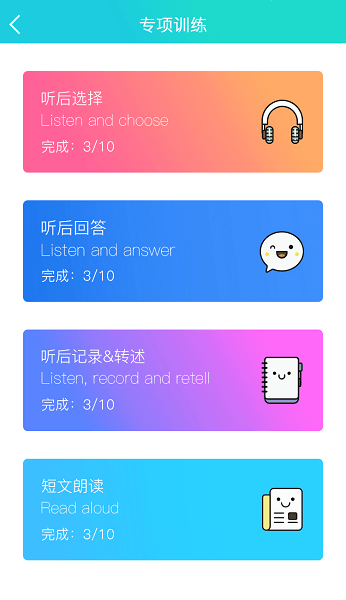 慧听说学生端针对中考英语精选专享训练,为您提供专业的英语听说训练服务,内置听后选择、回答、记录转述以及短文朗读功能,同步考点考情,是您备战中考英语的必备手机app!