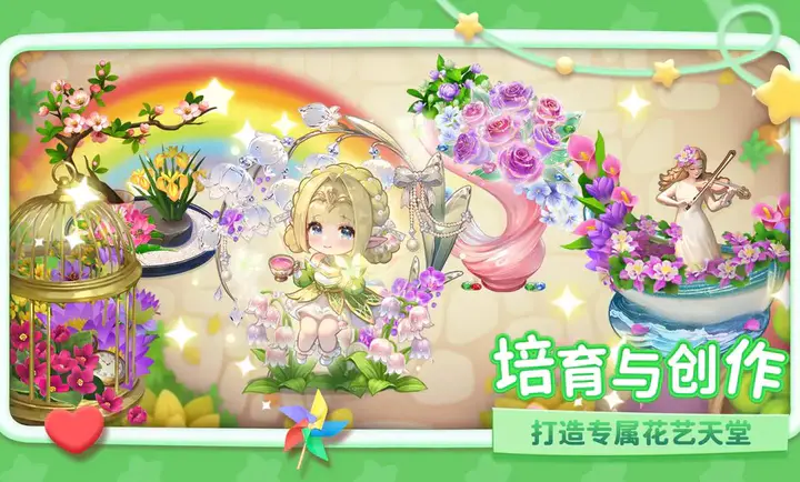 3.然后在专属的花艺天堂中种植、照料和装饰各类花朵,结合创意设计打造出独一无二的花园场景。