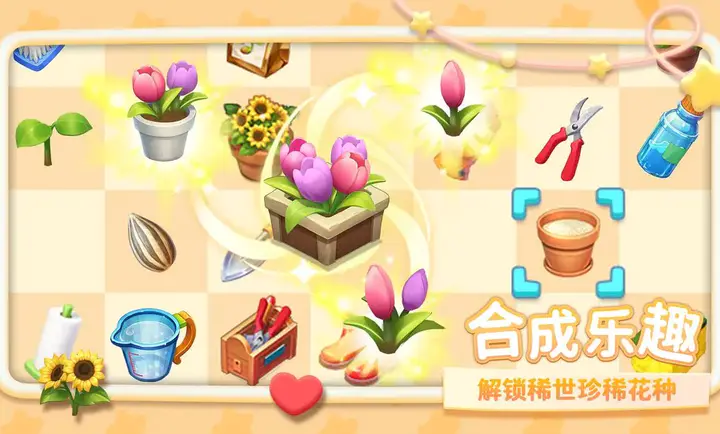 5.通过组合不同的植物材料和工具,解锁稀世珍稀花种,提升园艺技能,探索更多有趣的合成玩法。