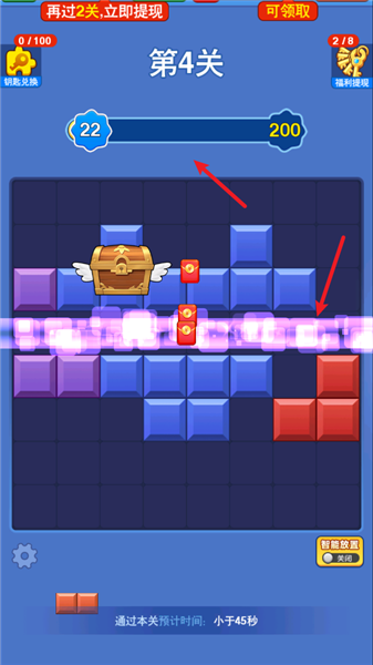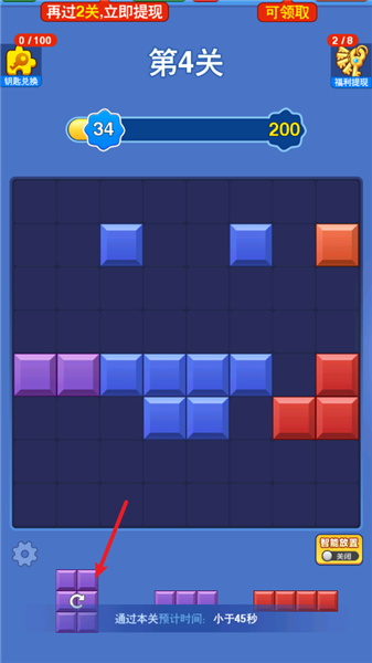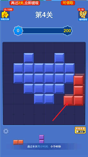 1、游戏中拖动方块即可放置到屏幕中空白的格子当中。