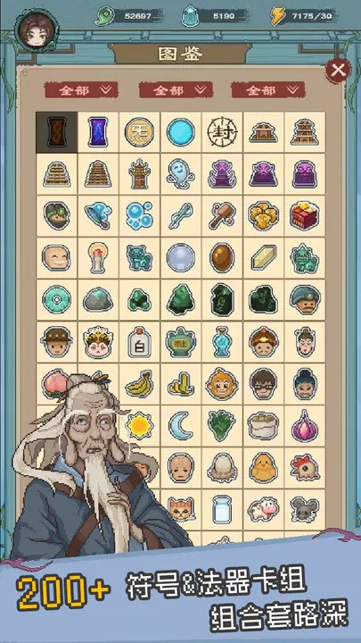 2.游戏中有两百多种符号和法器的卡组,不同的组合可以带来不同的效果,也可以组合成各种套路。