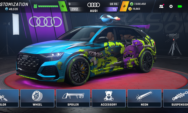 2、游戏中的所有赛车都支持玩家们进行自定义,对赛车进行改装,增强赛车的实力,将赛车改的更加符合自己的喜好,轮胎贴膜,引擎,发动机都可;