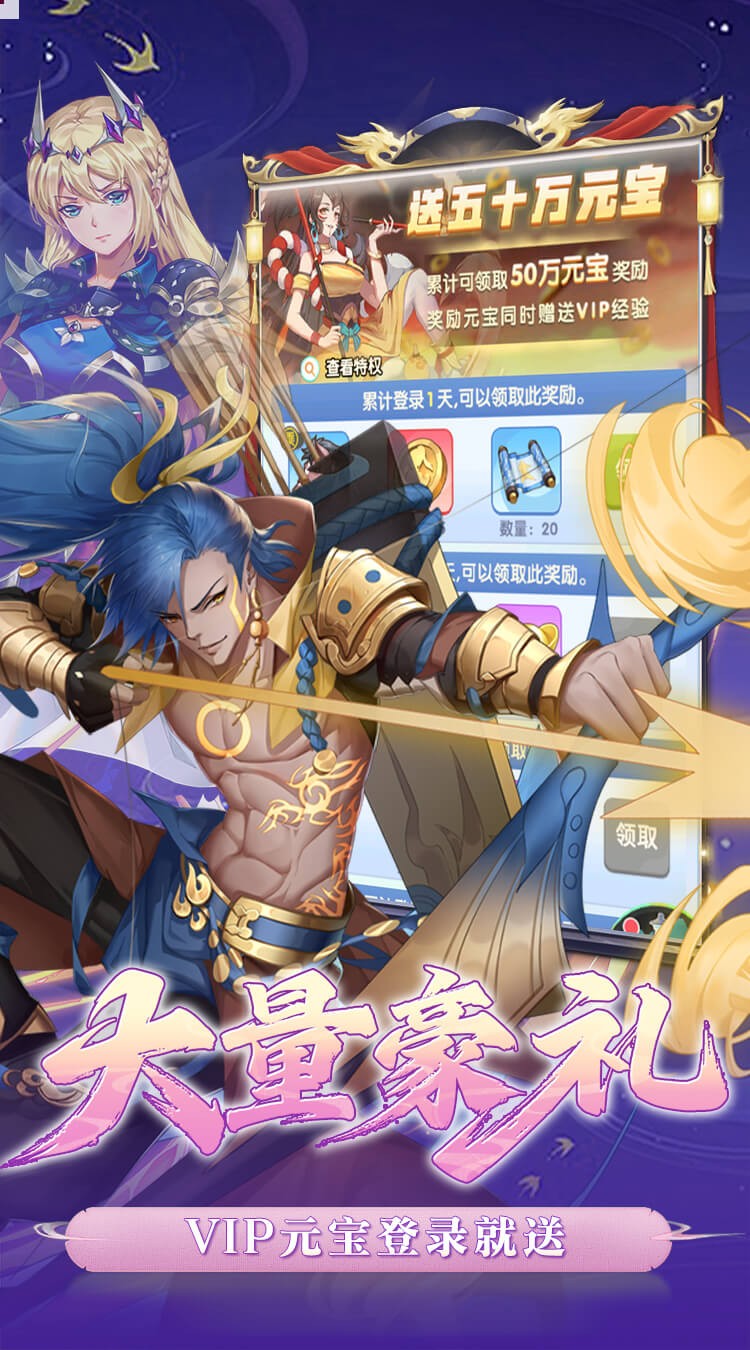 上线即送VIP特权与专属礼品,元宝、化神丹、宝石、上古神兽等丰厚资源,轻松领取即刻拥有。