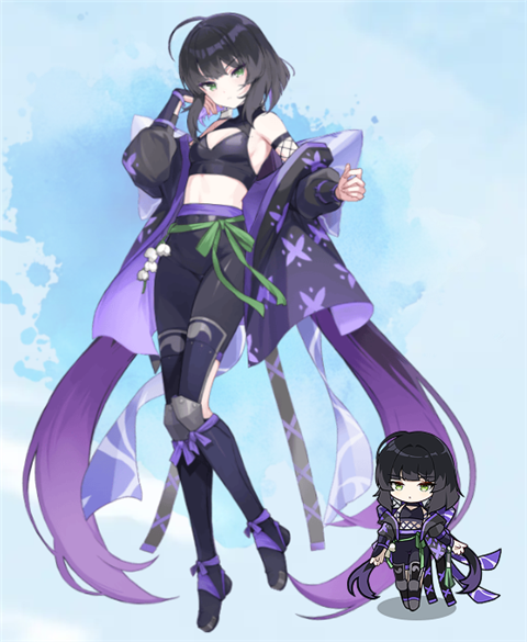 一个美丽的女孩,留着独特的黑色波波头和浅绿色的眼睛。她头脑敏锐,行动迅速,能准确把握情况并找到最佳解决方案。