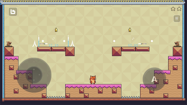 3、双手操作,左边屏幕用于控制小狐狸移动,右边屏幕点击即可跳跃;