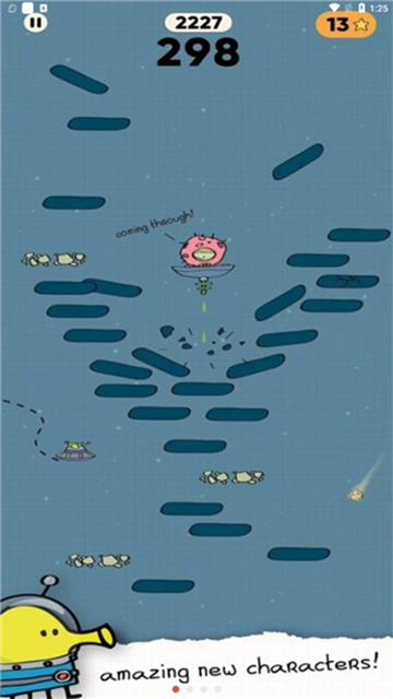 4、点击屏幕可以发射子弹,当跳跃途中遇到“怪兽”时可以击败它们