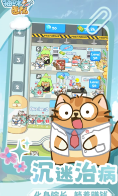 猫咪医院手游是一款以猫咪医疗为主题的模拟经营游戏,玩家将扮演宠物医院院长,通过接诊病猫、升级设备、管理员工及参与社交活动,打造全球顶尖的猫咪医疗中心,背景设定在一个充满温馨的猫咪世界,主角是一只继承豪华私人医院的小猫,需帮助小猫经营医院,救治不同病症的猫咪,逐步提升医院等级,每天接待受伤或生病的猫咪,通过观察症状、记录病情,制定个性化治疗方案(如包扎伤口、注射药物、健康检查等)。
