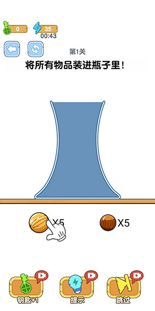 通过左右或上下滑动屏幕摇晃瓶子,促使物品自然下落或移位,减少内部空隙。