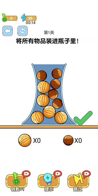 超过六十个精心设计的关卡,每关瓶型与物品组合均不重复,确保持续的新鲜感与脑力刺激。