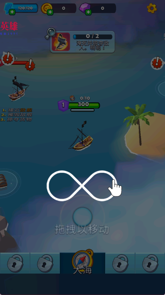1、拖动屏幕控制船移动