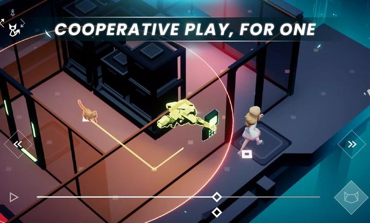 玩家可以像操作视频播放器一样,自由地向前或向后拖动时间轴,预演行动后果,调整每一步。这种独特的机制让解谜从试错变成了沙盘推演,玩家需要像导演一样,为小女孩和猫咪编排一套完美同步、避开所有守卫的行动剧本。