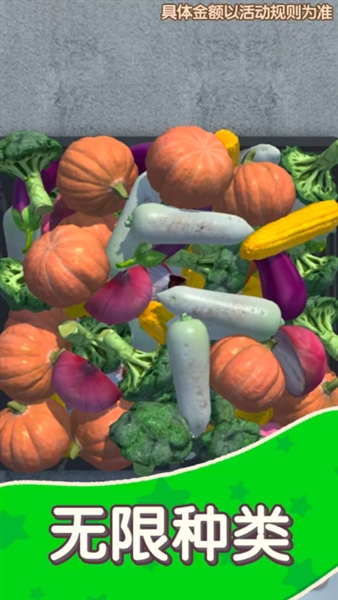 3、ASMR 级沉浸音效:消除不同品类的物品,会触发对应的专属音效,比如蔬菜主题关卡的清脆切割声、珠宝店主题关卡的金属碰撞声,专属音效搭配魔性的背景音乐,打造出听觉层面的沉浸式体验。