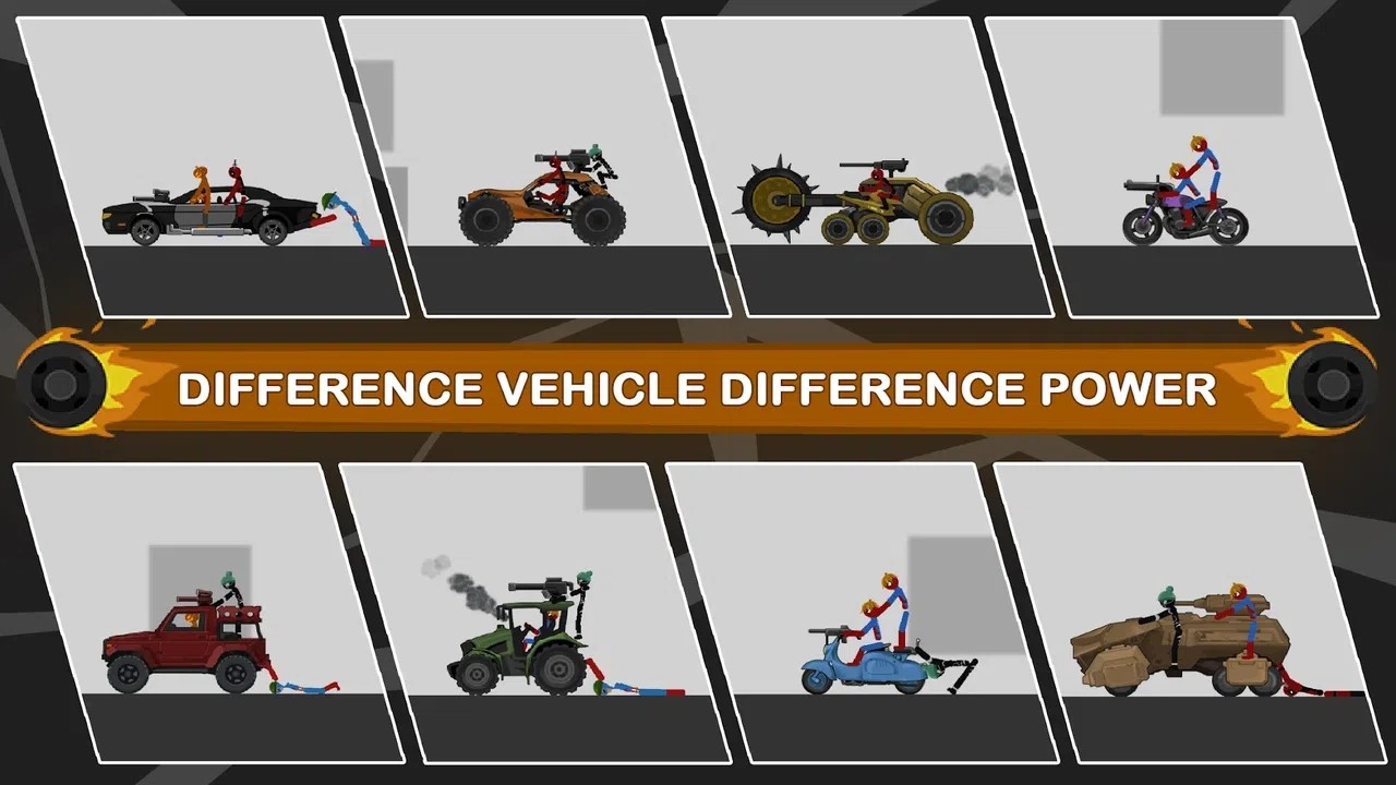 2、随意进行挑战,更多的火柴人角色可以安排的,各种不同类型车辆,完成自己的毁灭竞技,可以随意挑选;