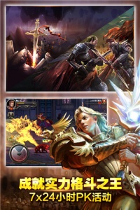 2、超级丰富的PK活动,全天候24小时都能随时随地畅享PK战斗。无限制的竞技场PK战斗更多不同的战役,需要你一一参与,真正来享受到无尽的秒杀快感,成就你的格斗之王体验